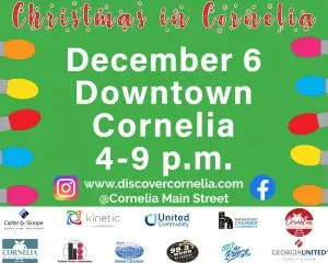 Come celebrate Christmas in downtown Cornelia from 4-9 p.m. @ 102 Grant Place in Cornelia, Ga. There will be a holiday market with artisan vendors, food vendors, and holiday themed activities!