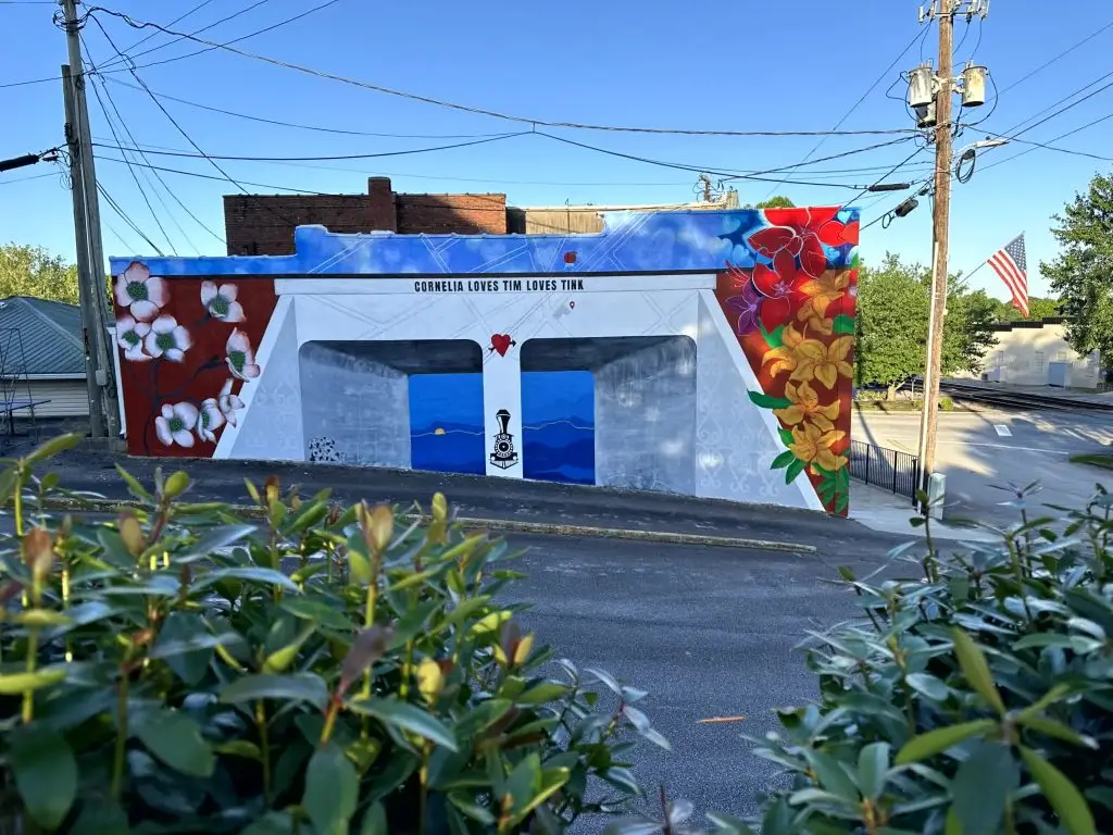 Our new Vibrant Communities, Public Art Mural was inspired by local graffiti “Tim Loves Tink” painted on the Wells Street underpass, years ago. The mural now brightens the heart of downtown. It pays homage to a story that captured the imagination of residents and visitors for years, symbolizing the passage of time and the community’s enduring spirit. Site owners Susan and Steve Campbell (who love the story) offered their building to support the city’s larger vision to bring art and beauty to Cornelia’s streetscape. Explore the story behind this mural project and discover why “ Cornelia loves Tim Loves Tink”!